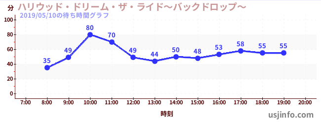 • ハリウッド・ドリーム・ザ・ライド〜バックドロップ〜$B$N(B2019年05月10日の待ち時間