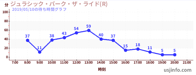 • ジュラシック・パーク・ザ・ライド(R)$B$N(B2019年05月10日の待ち時間
