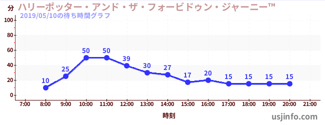 • ハリーポッター・アンド・ザ・フォービドゥン・ジャーニー™$B$N(B2019年05月10日の待ち時間