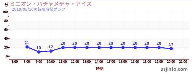• ミニオン・ハチャメチャ・アイス$B$N(B2019年05月10日の待ち時間