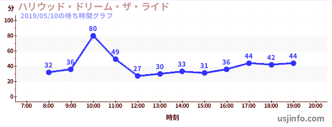 • ハリウッド・ドリーム・ザ・ライド$B$N(B2019年05月10日の待ち時間
