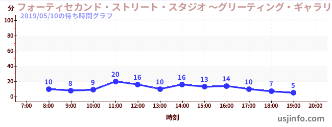 • フォーティセカンド・ストリート・スタジオ ~グリーティング・ギャラリー~ ミニオン$B$N(B2019年05月10日の待ち時間