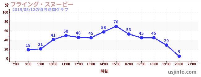 • フライング・スヌーピー$B$N(B2019年05月12日の待ち時間