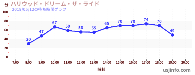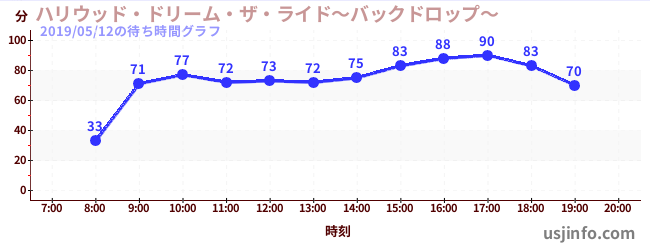 • ハリウッド・ドリーム・ザ・ライド$B$N(B2019年05月12日の待ち時間