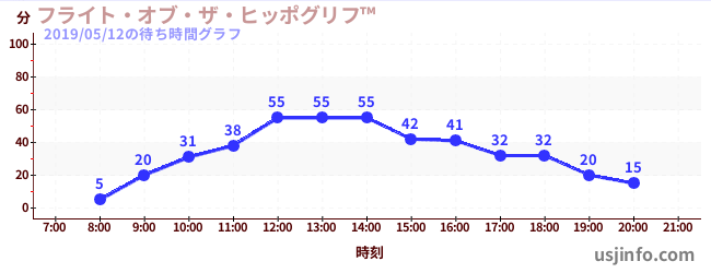 • フライト・オブ・ザ・ヒッポグリフ™$B$N(B2019年05月12日の待ち時間