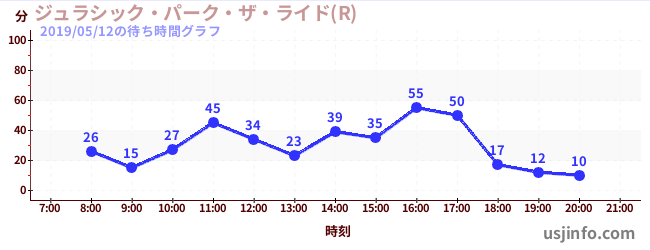 • ジュラシック・パーク・ザ・ライド(R)$B$N(B2019年05月12日の待ち時間