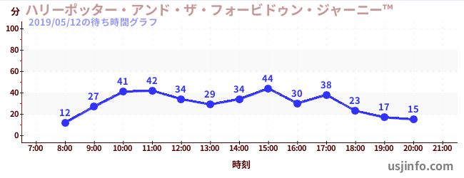 • ハリーポッター・アンド・ザ・フォービドゥン・ジャーニー™$B$N(B2019年05月12日の待ち時間