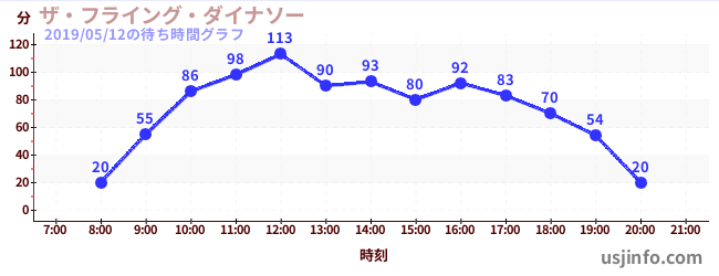 • ザ・フライング・ダイナソー$B$N(B2019年05月12日の待ち時間