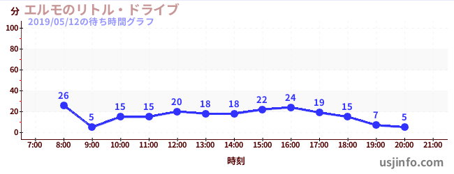 • エルモのリトル・ドライブ$B$N(B2019年05月12日の待ち時間