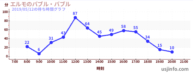 • エルモのバブル・バブル$B$N(B2019年05月12日の待ち時間