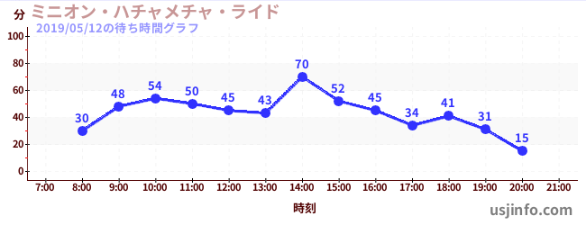 • ミニオン・ハチャメチャ・ライド$B$N(B2019年05月12日の待ち時間