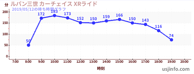 • ルパン三世 カーチェイス XRライド$B$N(B2019年05月12日の待ち時間