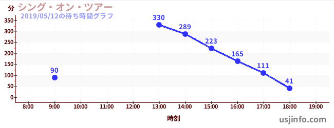 • シング・オン・ツアー$B$N(B2019年05月12日の待ち時間