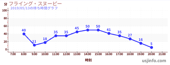 • フライング・スヌーピー$B$N(B2019年05月13日の待ち時間
