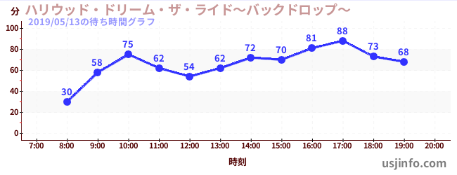 • ハリウッド・ドリーム・ザ・ライド〜バックドロップ〜$B$N(B2019年05月13日の待ち時間
