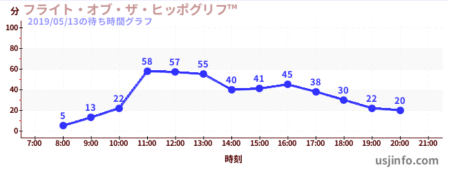 • フライト・オブ・ザ・ヒッポグリフ™$B$N(B2019年05月13日の待ち時間