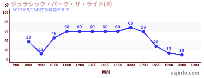 • ジュラシック・パーク・ザ・ライド(R)$B$N(B2019年05月13日の待ち時間