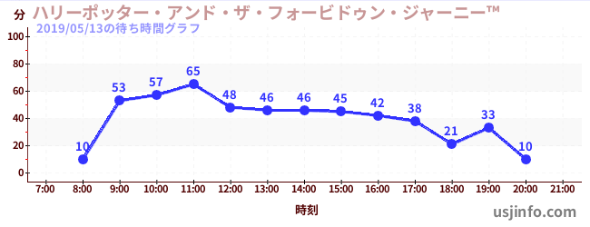 • ハリーポッター・アンド・ザ・フォービドゥン・ジャーニー™$B$N(B2019年05月13日の待ち時間