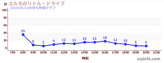 • エルモのリトル・ドライブ$B$N(B2019年05月13日の待ち時間