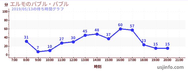 • エルモのバブル・バブル$B$N(B2019年05月13日の待ち時間