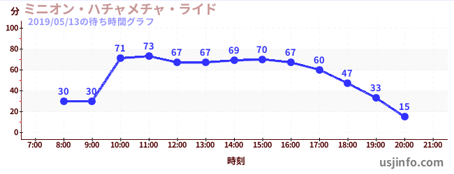 • ミニオン・ハチャメチャ・ライド$B$N(B2019年05月13日の待ち時間