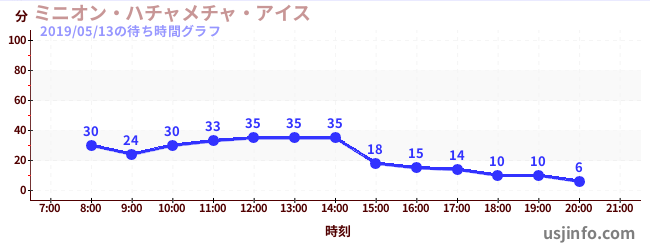 • ミニオン・ハチャメチャ・アイス$B$N(B2019年05月13日の待ち時間