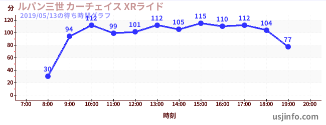 • ルパン三世 カーチェイス XRライド$B$N(B2019年05月13日の待ち時間