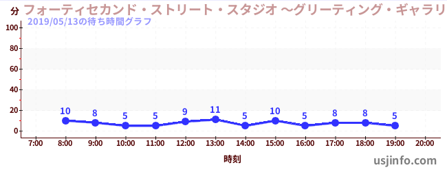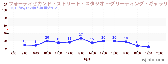 • フォーティセカンド・ストリート・スタジオ ~グリーティング・ギャラリー~ ミニオン$B$N(B2019年05月13日の待ち時間