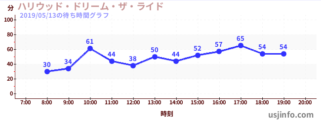 • ハリウッド・ドリーム・ザ・ライド$B$N(B2019年05月13日の待ち時間