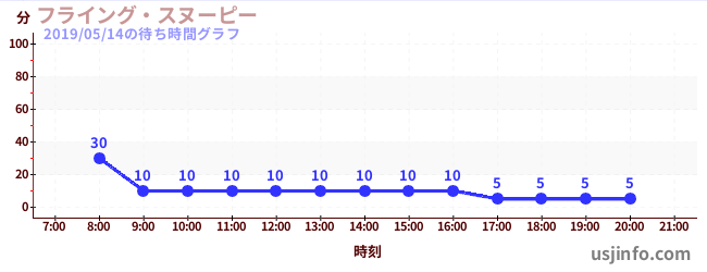• フライング・スヌーピー$B$N(B2019年05月14日の待ち時間