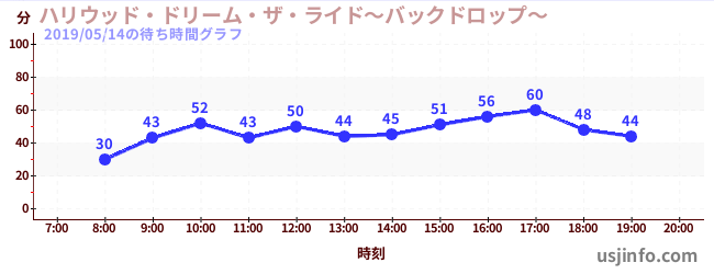 • ハリウッド・ドリーム・ザ・ライド〜バックドロップ〜$B$N(B2019年05月14日の待ち時間