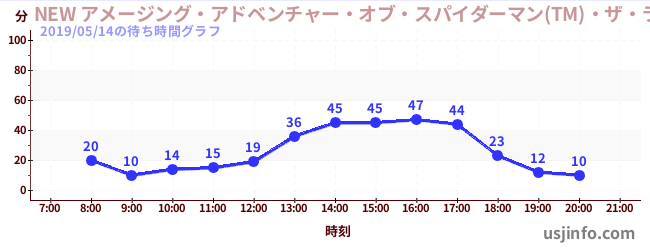 • NEW アメージング・アドベンチャー・オブ・スパイダーマン(TM)・ザ・ライド 4K3D$B$N(B2019年05月14日の待ち時間