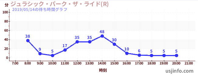 • ジュラシック・パーク・ザ・ライド(R)$B$N(B2019年05月14日の待ち時間