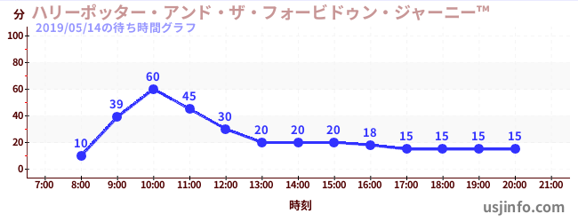• ハリーポッター・アンド・ザ・フォービドゥン・ジャーニー™$B$N(B2019年05月14日の待ち時間