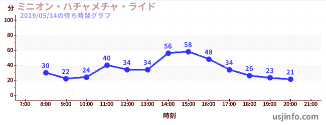 • ミニオン・ハチャメチャ・ライド$B$N(B2019年05月14日の待ち時間