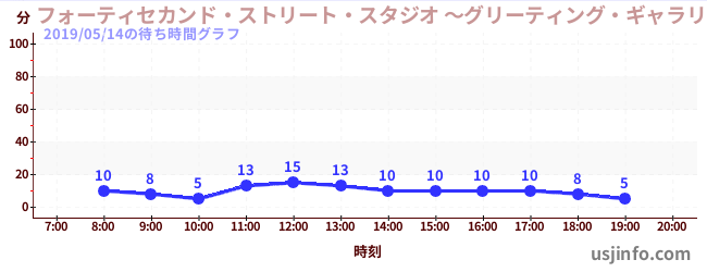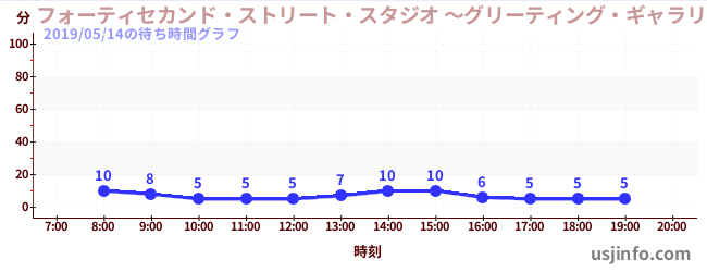 • フォーティセカンド・ストリート・スタジオ ~グリーティング・ギャラリー~ ミニオン$B$N(B2019年05月14日の待ち時間