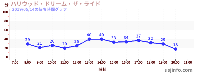 • ハリウッド・ドリーム・ザ・ライド$B$N(B2019年05月14日の待ち時間