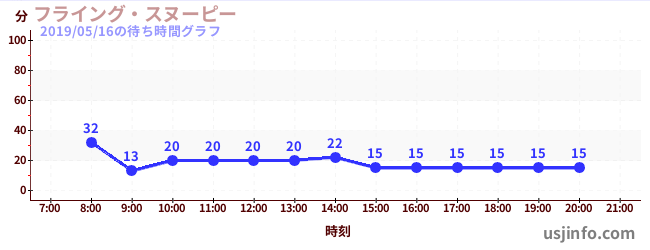 • フライング・スヌーピー$B$N(B2019年05月16日の待ち時間