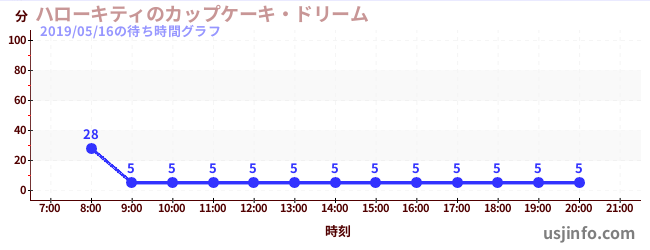 • ハローキティのカップケーキ・ドリーム$B$N(B2019年05月16日の待ち時間