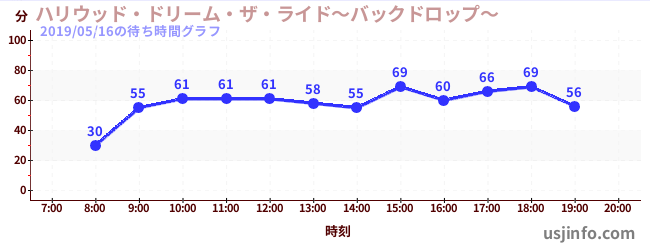 • ハリウッド・ドリーム・ザ・ライド〜バックドロップ〜$B$N(B2019年05月16日の待ち時間