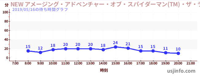 • NEW アメージング・アドベンチャー・オブ・スパイダーマン(TM)・ザ・ライド 4K3D$B$N(B2019年05月16日の待ち時間