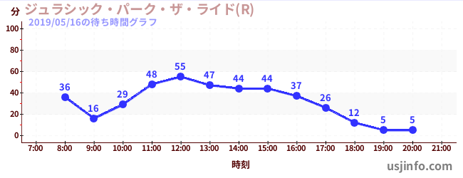 • ジュラシック・パーク・ザ・ライド(R)$B$N(B2019年05月16日の待ち時間