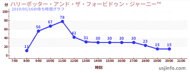 • ハリーポッター・アンド・ザ・フォービドゥン・ジャーニー™$B$N(B2019年05月16日の待ち時間