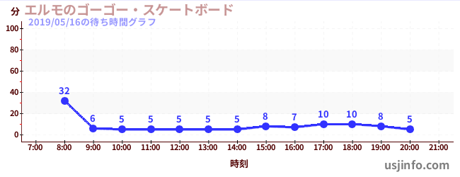 • エルモのゴーゴー・スケートボード$B$N(B2019年05月16日の待ち時間
