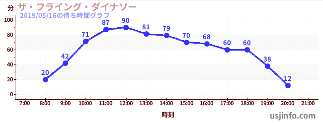 • ザ・フライング・ダイナソー$B$N(B2019年05月16日の待ち時間