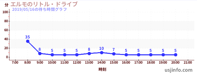 • エルモのリトル・ドライブ$B$N(B2019年05月16日の待ち時間
