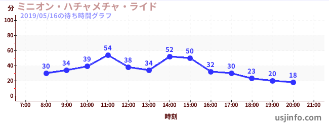 • ミニオン・ハチャメチャ・ライド$B$N(B2019年05月16日の待ち時間
