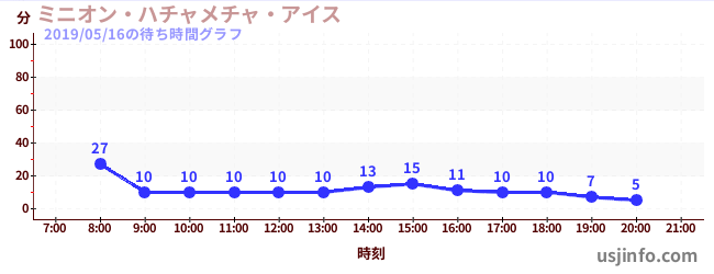 • ミニオン・ハチャメチャ・アイス$B$N(B2019年05月16日の待ち時間