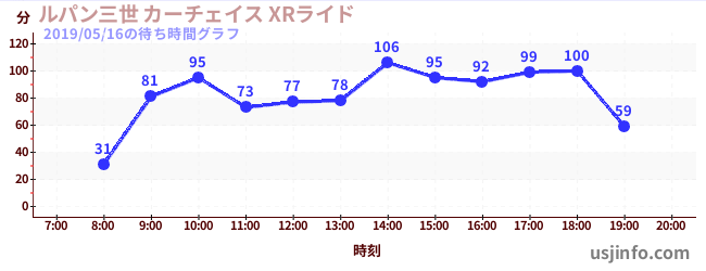 • ルパン三世 カーチェイス XRライド$B$N(B2019年05月16日の待ち時間