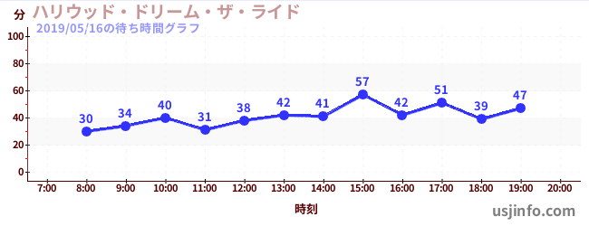 • ハリウッド・ドリーム・ザ・ライド$B$N(B2019年05月16日の待ち時間